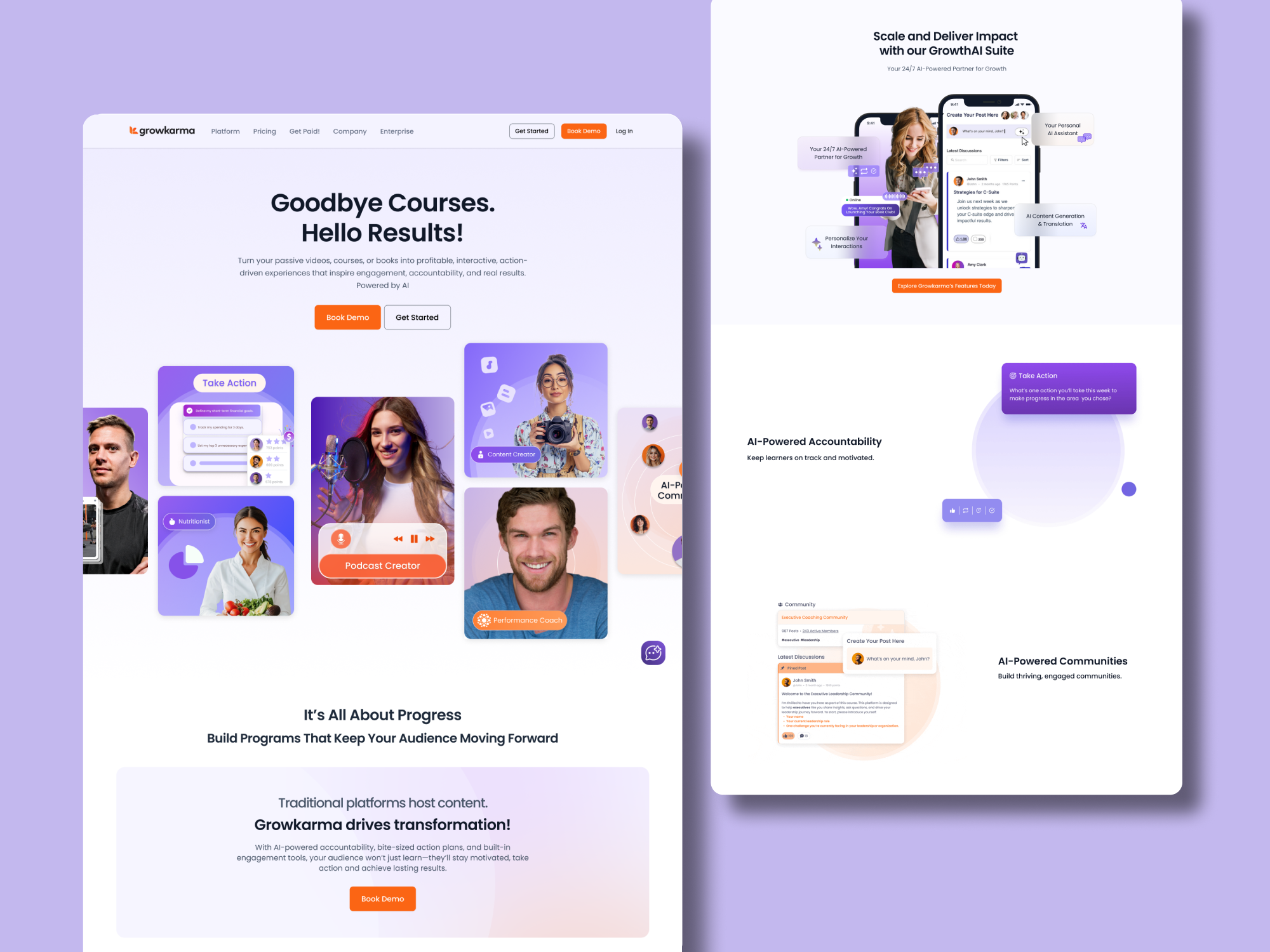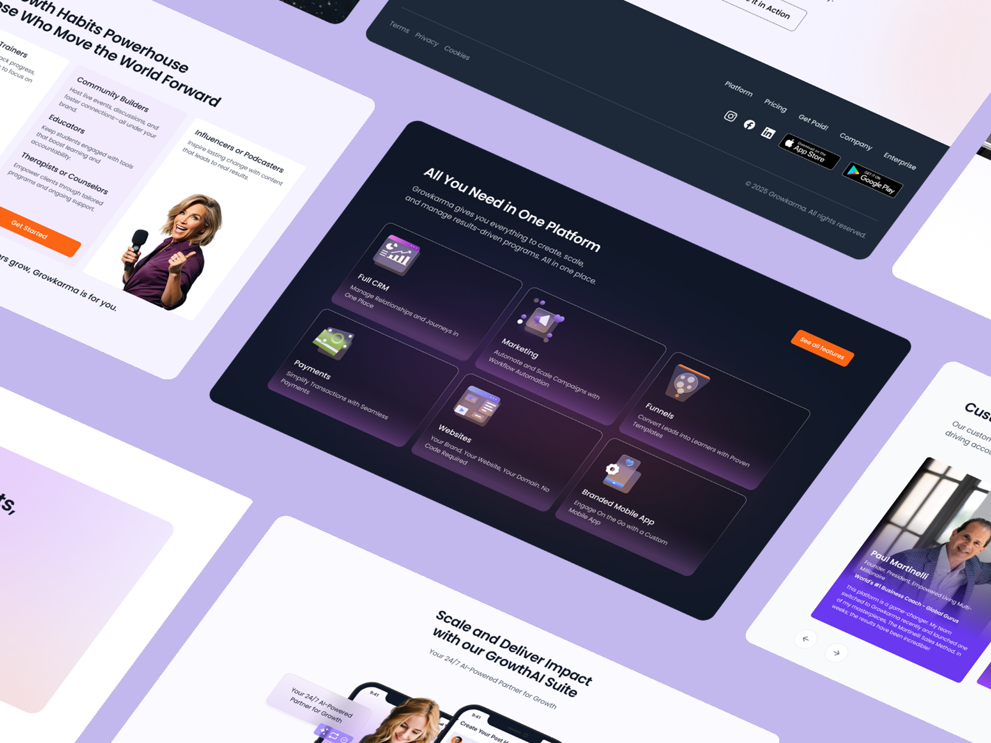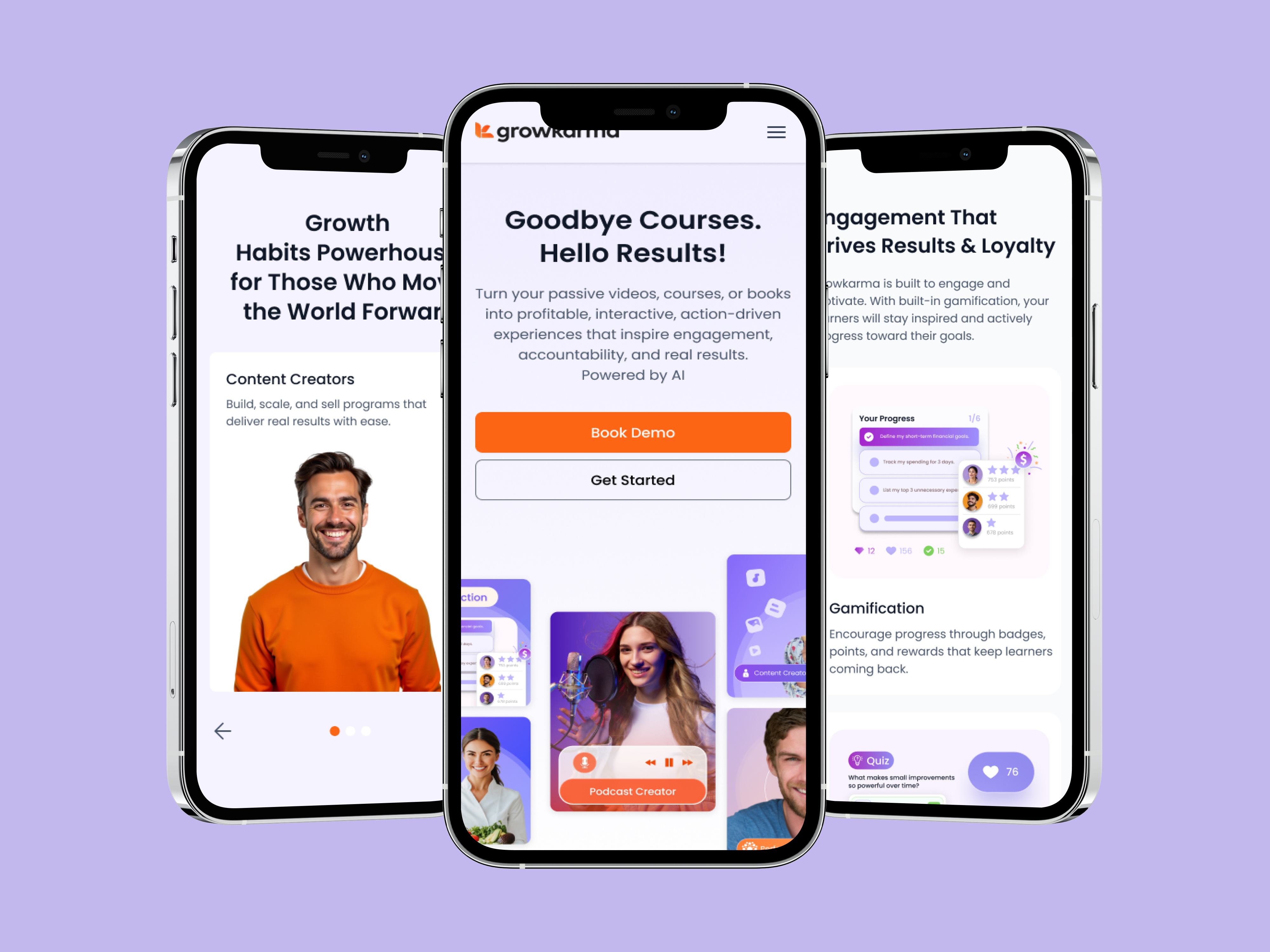 Growkarma is an ambitious AI-powered learning platform designed to help creators, coaches, and educators transform passive content into interactive, results-driven experiences. The challenge was to translate a feature-rich, visually dynamic Figma design into a fully functional Webflow website — one that could eloquently communicate a complex product offering while remaining intuitive and engaging for a diverse audience of educators, coaches, therapists, and content creators.